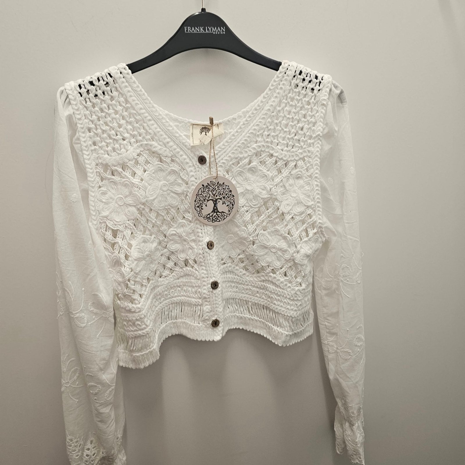 This is a top with a cotton long sleeve and Crochet middle section, this top is waist length and looks fab with jeans, pants, skirts or shorts,